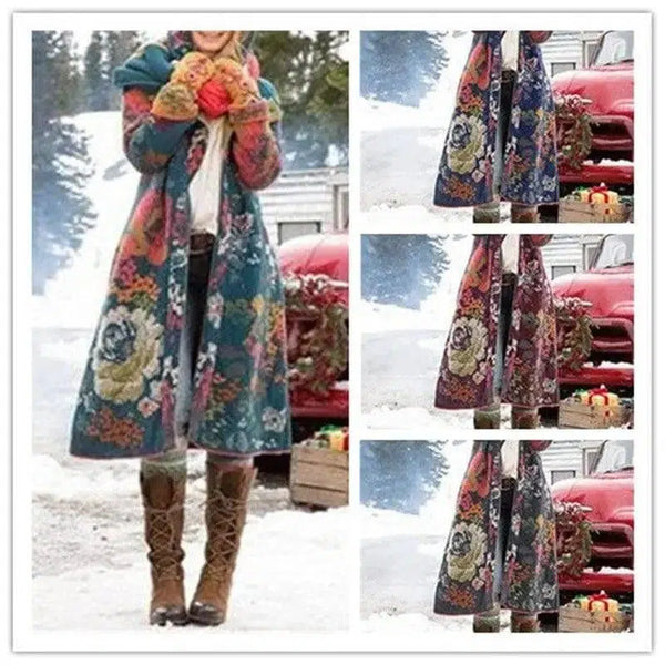 Описание товара: Женский суд стиль печатных средней длины с капюшоном толстые