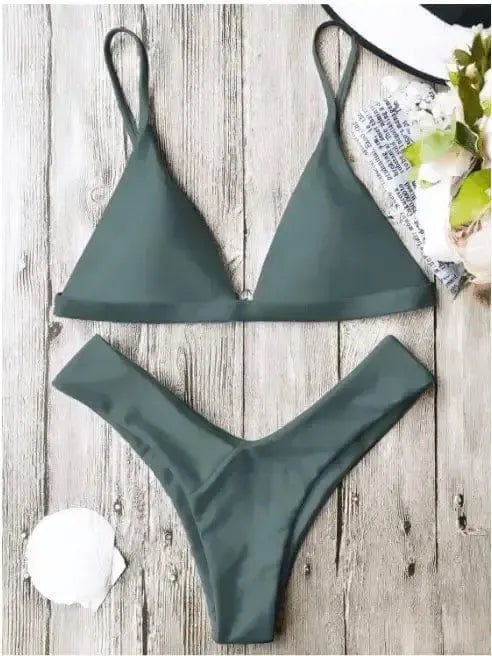 Шикарный оливковый комплект бикини с треугольником для женщин - Купальники первой необходимости