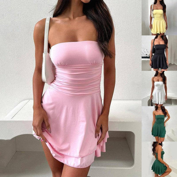 Y2K Короткое платье без рукавов Летние плиссированные узкие платья